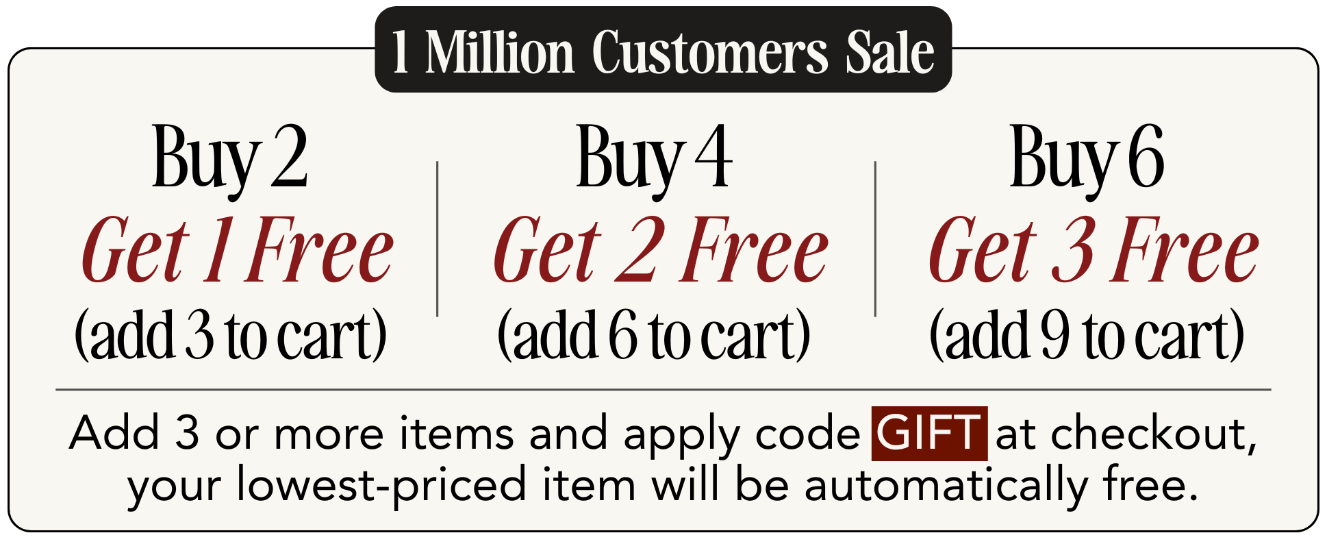 1.000.000+ CUSTOMERS SALE: Add at least three pieces of jewelry to your cart. When you apply the coupon code 'GIFT' at checkout, the least expensive item will automatically become free.